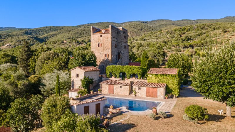 Immersa nel verde delle colline ai piedi di Cortona, a breve distanza dal Lago Trasimeno, questa affascinante residenza di 396 metri quadrati sorge da un’antica torre del XII secolo e si sviluppa su quattro livelli, articolati in ambienti ampi e versatili, perfettamente restaurati nel rispetto dell’architettura originale.