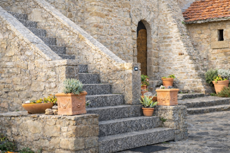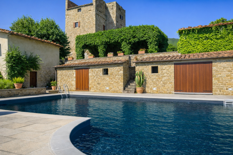 A corredo della torre, la proprietà dispone di numerosi spazi accessori: due limonaie utilizzabili per diversi scopi, due ampi magazzini, una rimessa adibita a sala da pranzo rustica e il locale tecnico della piscina, affiancato da un bagno di servizio. Completano la proprietà due garage privati e una suggestiva grotta interrata, anticamente usata come dispensa.