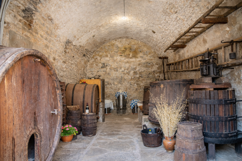 Piano terra: Ospita due grandi cantine con gli antichi granai da recuperare, una taverna con angolo cottura e una sala polivalente collocata in un annesso situato di fronte alla torre, attualmente arredata come sala da pranzo.