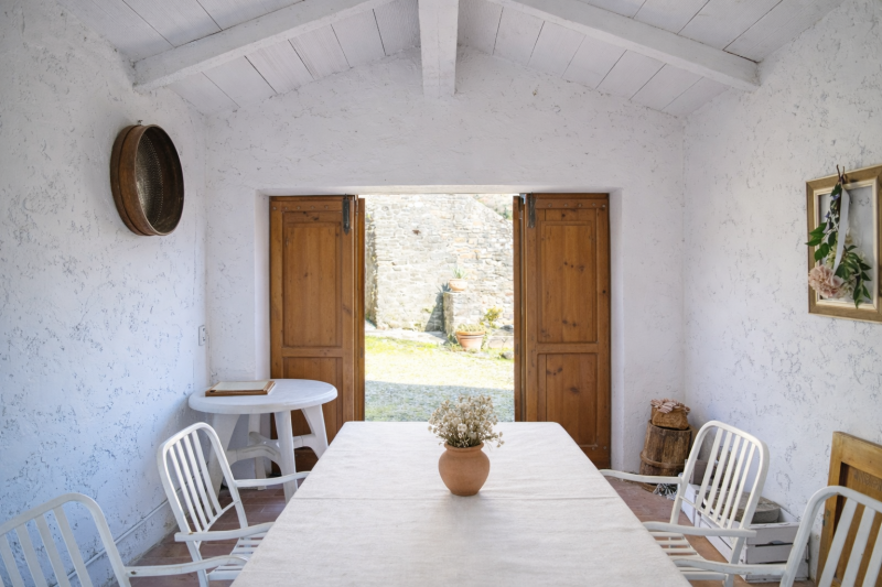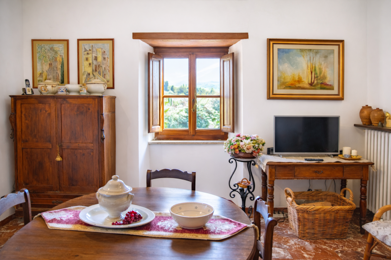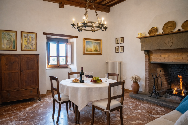 Il casale si presenta in eccellenti condizioni, grazie a un attento restauro sia strutturale che nelle finiture. Gli interni conservano il fascino autentico della tradizione toscana, con travi in legno a vista, pareti in intonaco bianco e dettagli in pietra serena. Tutti gli impianti sono allacciati, incluso un efficiente sistema di riscaldamento a gas.