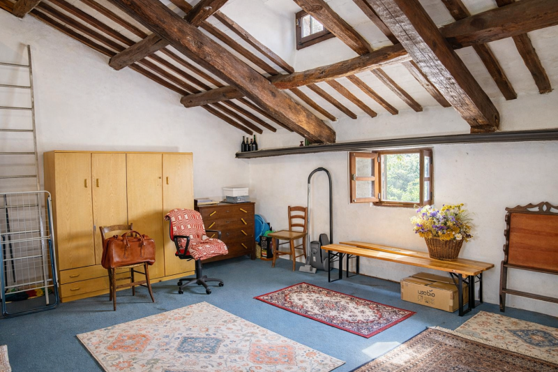 Primo piano: accessibile da scala esterna in pietra, ospita un ingresso, un accogliente soggiorno con stufa, una camera matrimoniale, un bagno e una lavanderia.