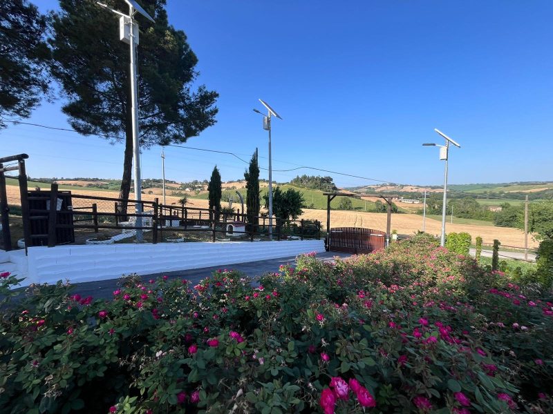 La villa è dotata di un impianto fotovoltaico da 7,5 kW, che alimenta l’illuminazione a LED esterna con due eleganti lampioni da giardino. Tutta l’illuminazione, interna ed esterna, è a basso consumo energetico.